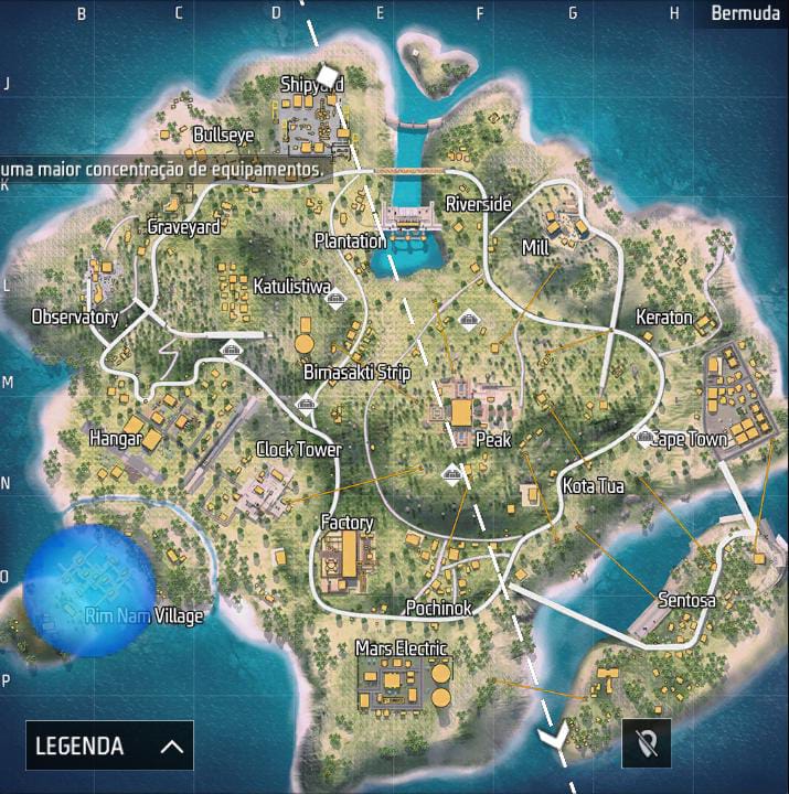 O mapa Bermuda é um dos mapas mais populares e icônicos do Free Fire, conhecido por seu design bem equilibrado e diversas áreas que favorecem diferentes estilos de jogo. Aqui estão os pontos principais sobre o mapa Bermuda: